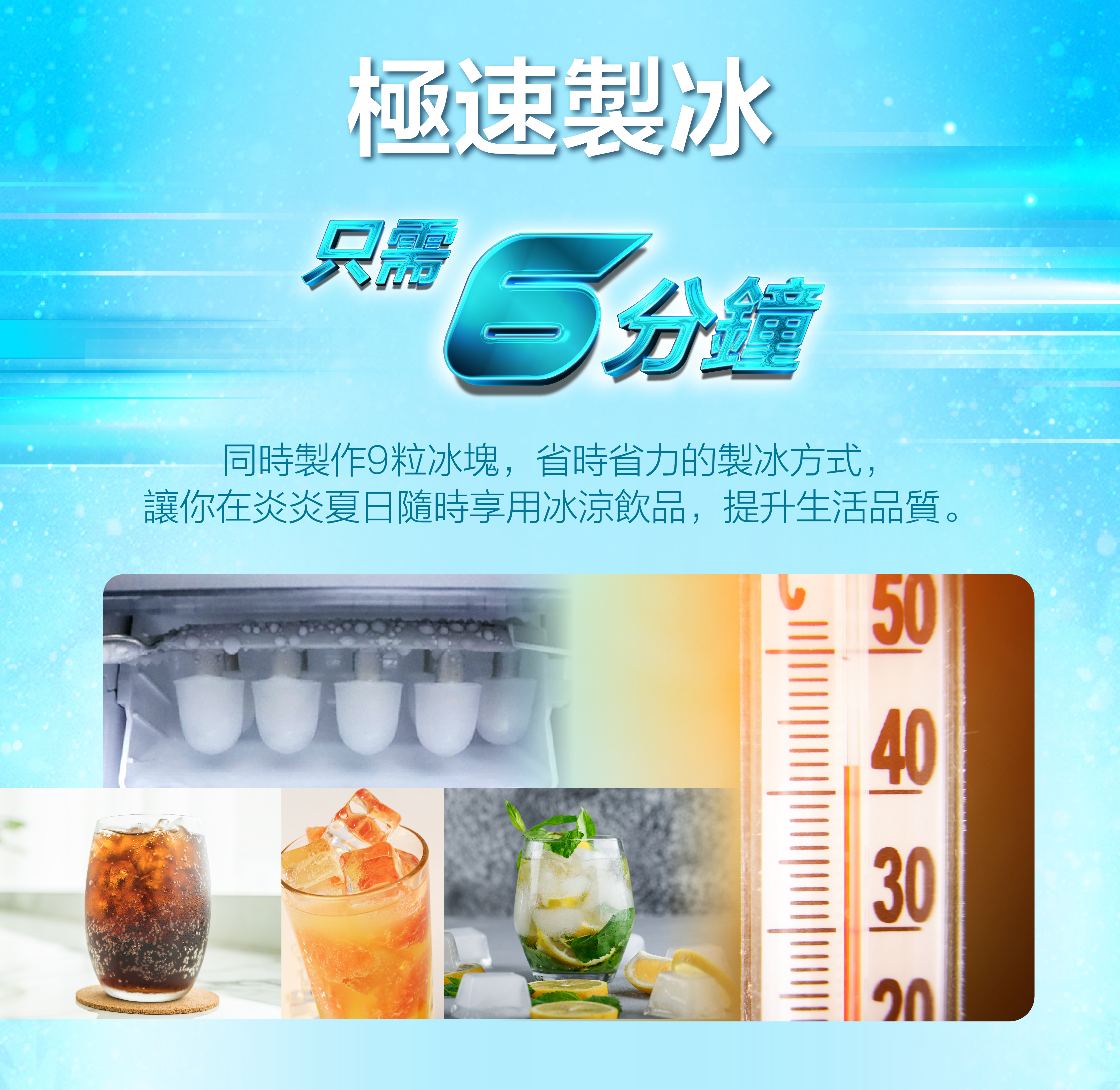 •  子彈頭冰塊可調節大小,單次出冰達9粒