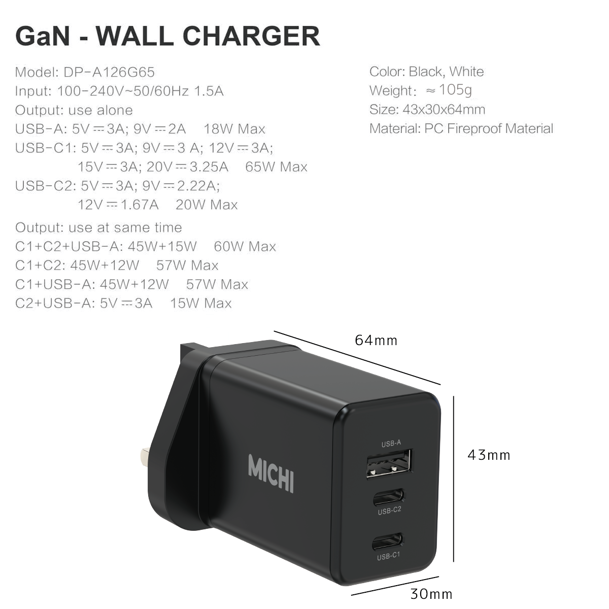 •  配備 2 個 Type C PD 端口和 1 個 USB-A 端口
