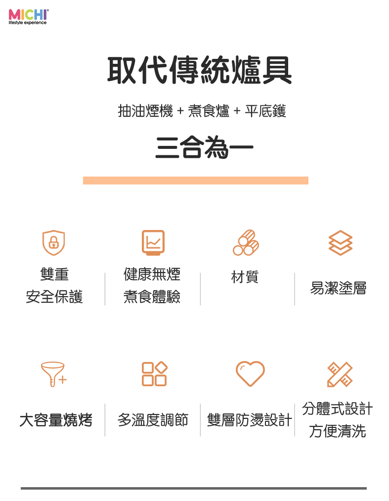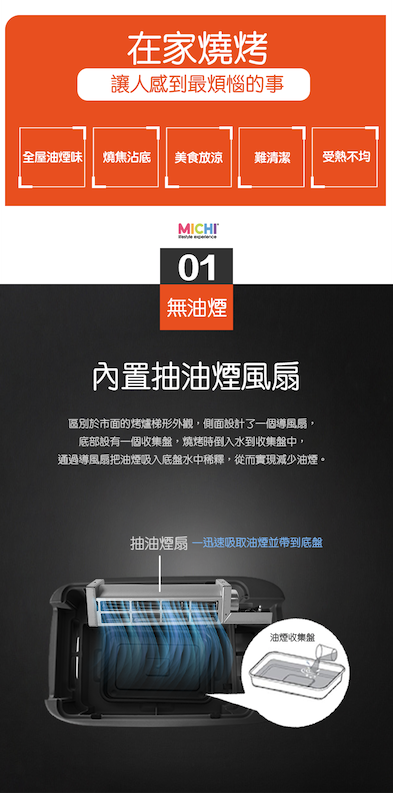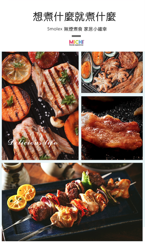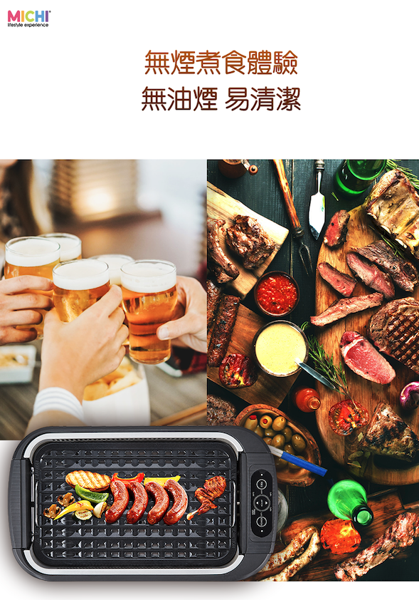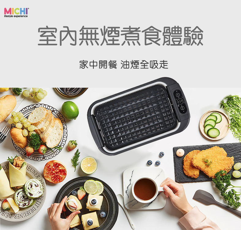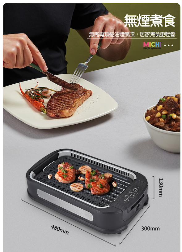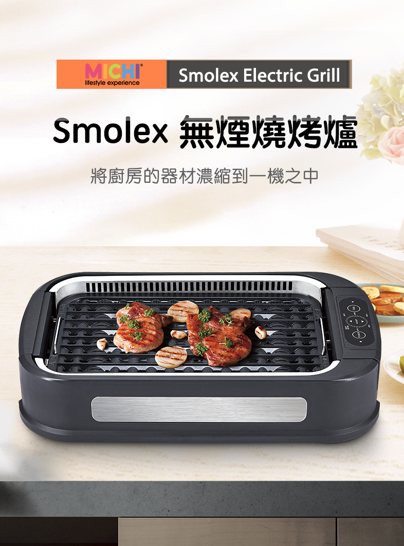 MICHI SMOLEX 無煙燒烤爐,抽油煙機爐頭平底鑊三合一,可享受室內無煙煮食體驗。