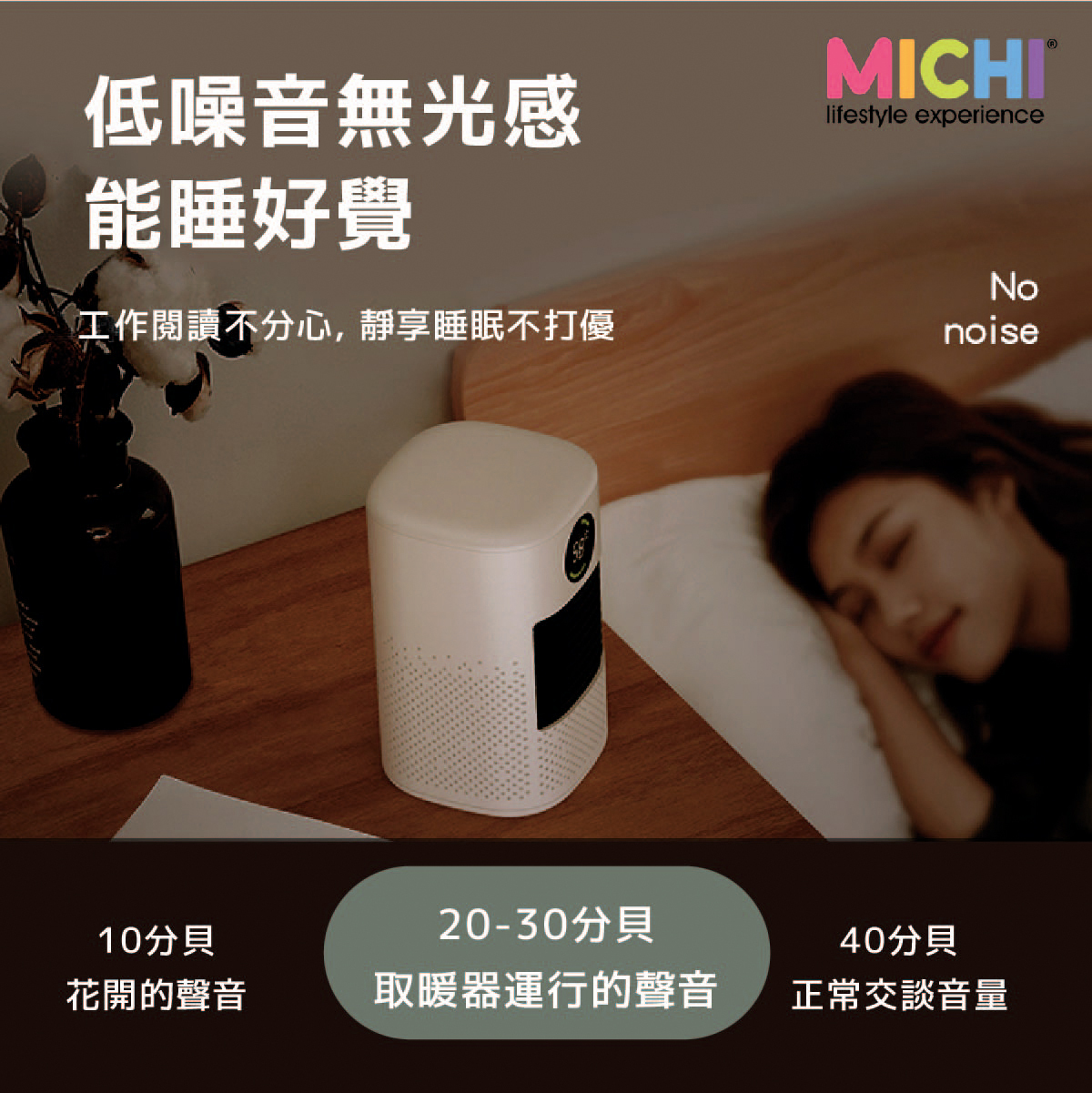 •  超低噪音運行 ,20-30分貝