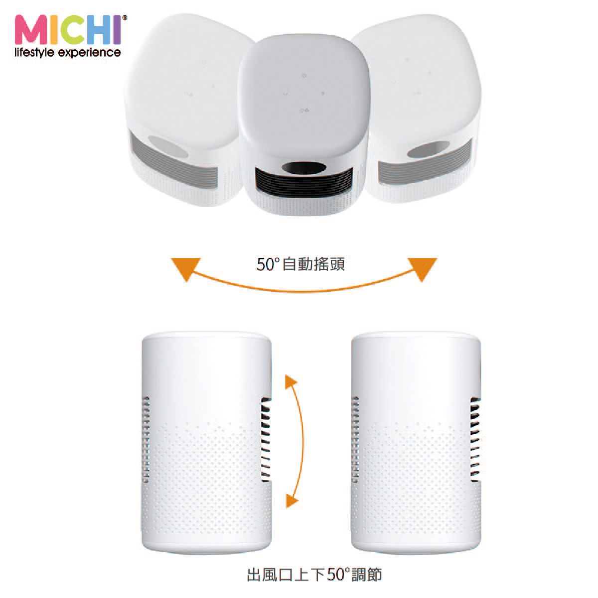 •  機身左右50度自動搖擺加上下出風調節