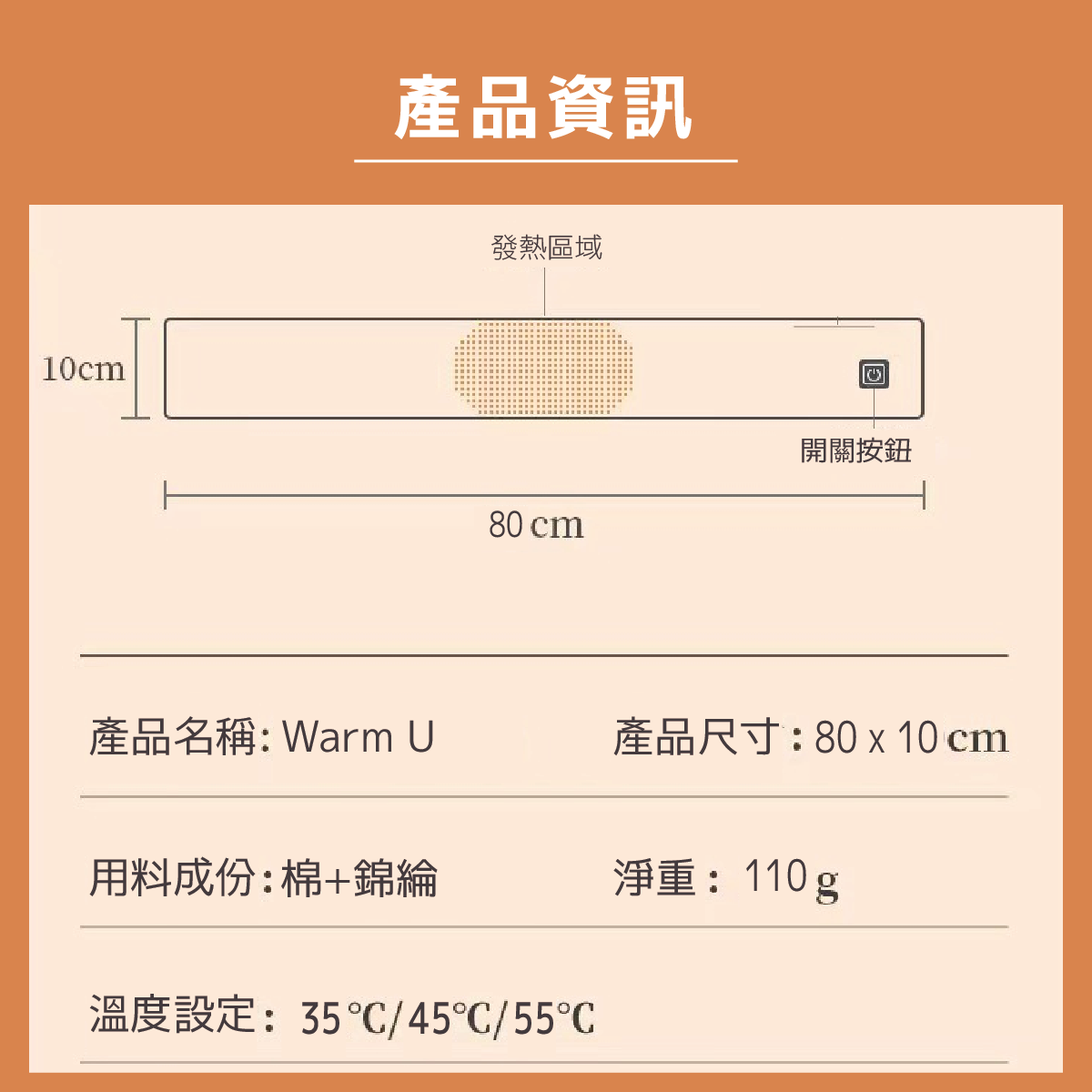 •  3檔溫度選擇 35/45/55 度