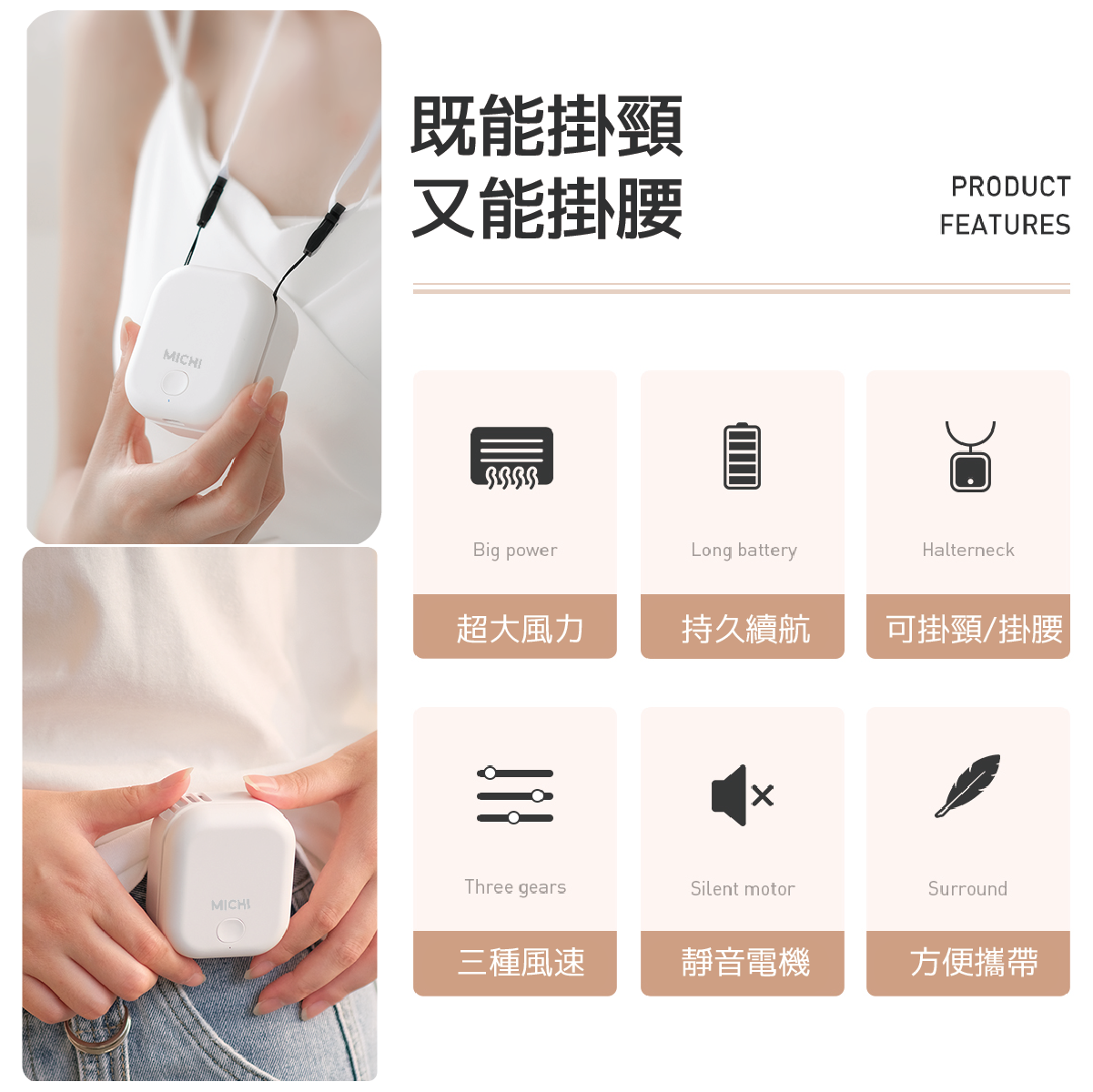 •  桌上使用 、掛腰、掛頸